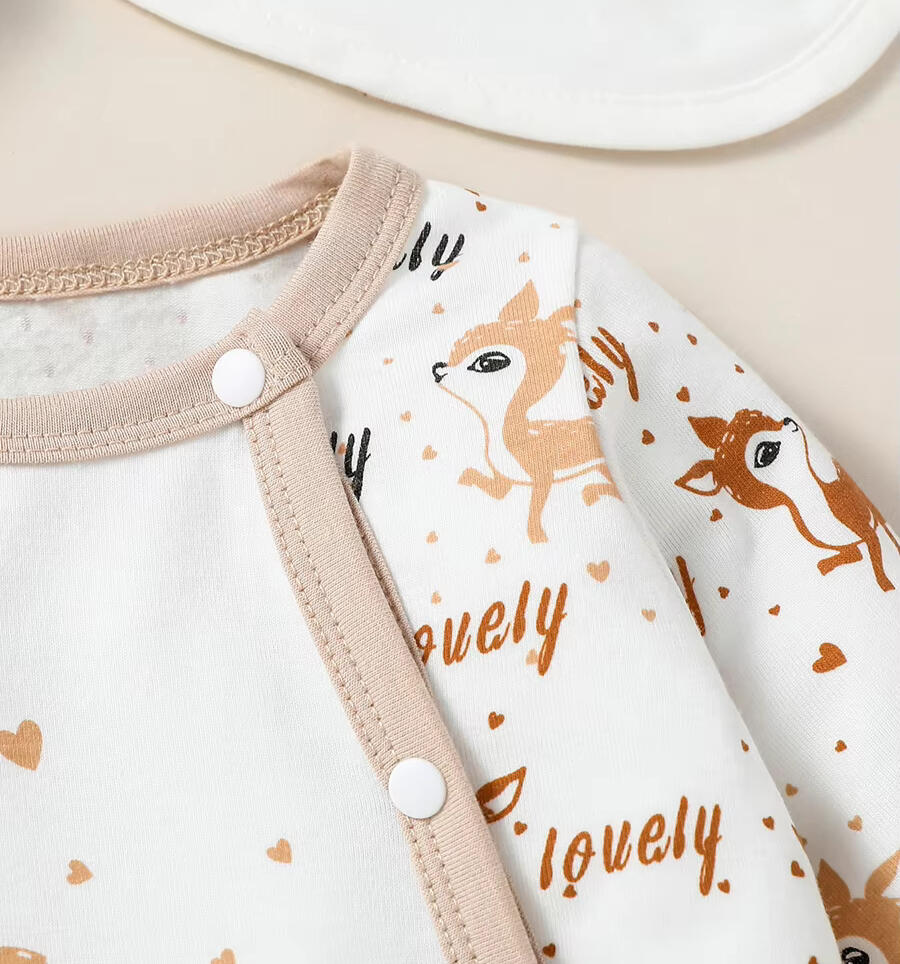 Our Baby Deer Outfit Set is made from a blend of 34% cotton, 62% polyester, and 4% elastane, offering the perfect combination of softness, stretch, and comfort. It is free from high-concerned chemicals, making it safe for your baby’s sensitive skin. This ensures that your child can move, play, and rest comfortably without irritation.